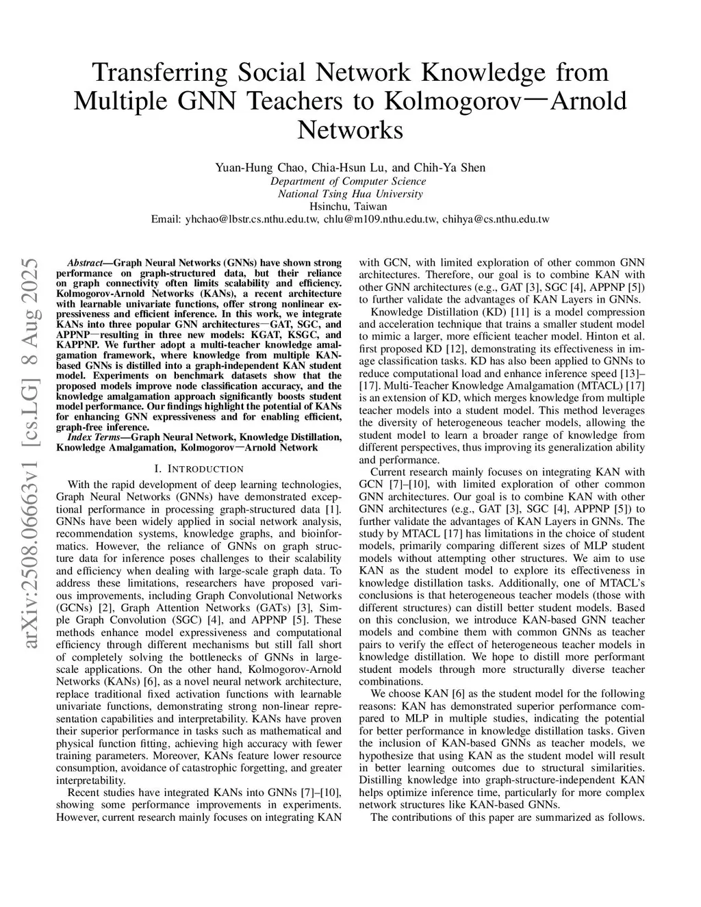 Transferring Social Network Knowledge from Multiple GNN Teachers to Kolmogorov-Arnold Networks