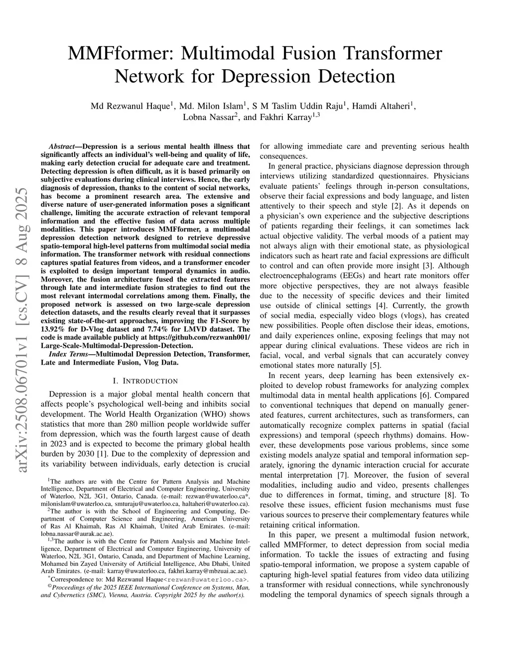 MMFformer: Multimodal Fusion Transformer Network for Depression Detection
