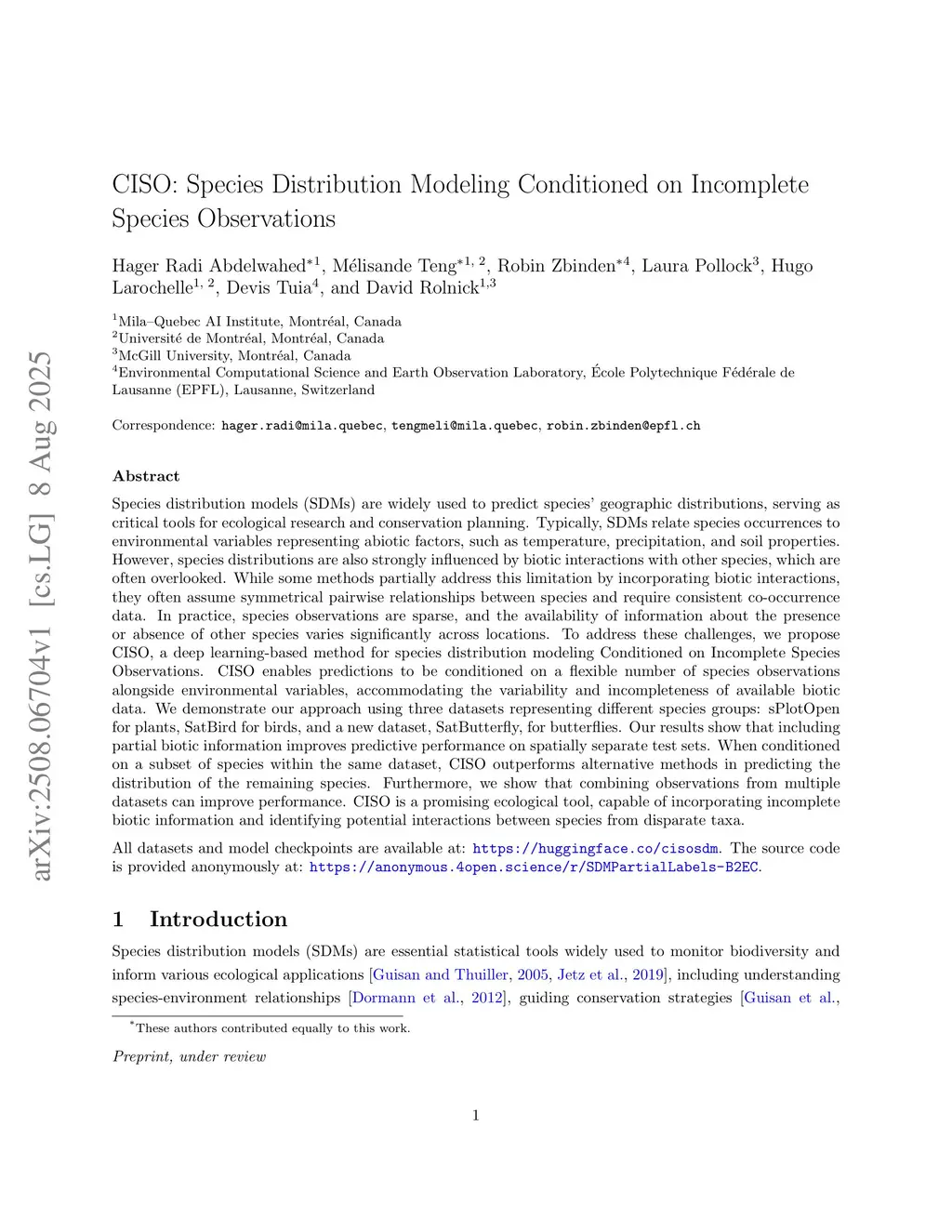 CISO: Species Distribution Modeling Conditioned on Incomplete Species Observations
