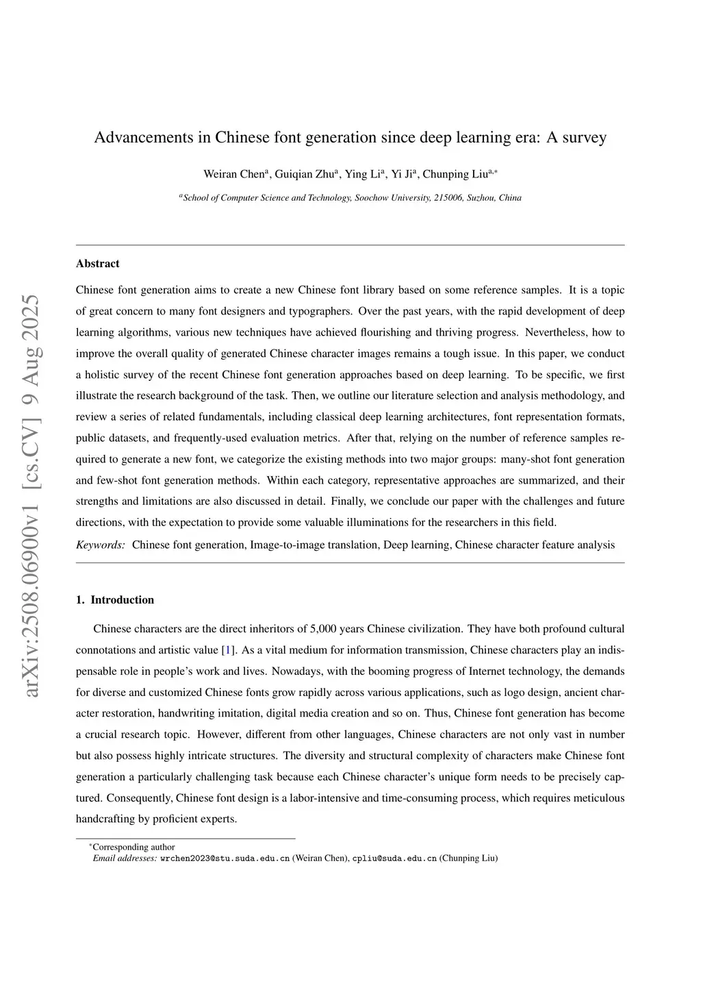 Advancements in Chinese font generation since deep learning era: A survey
