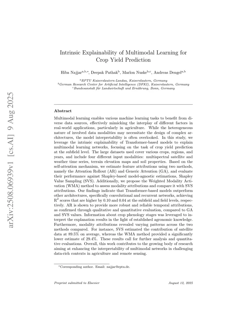Intrinsic Explainability of Multimodal Learning for Crop Yield Prediction