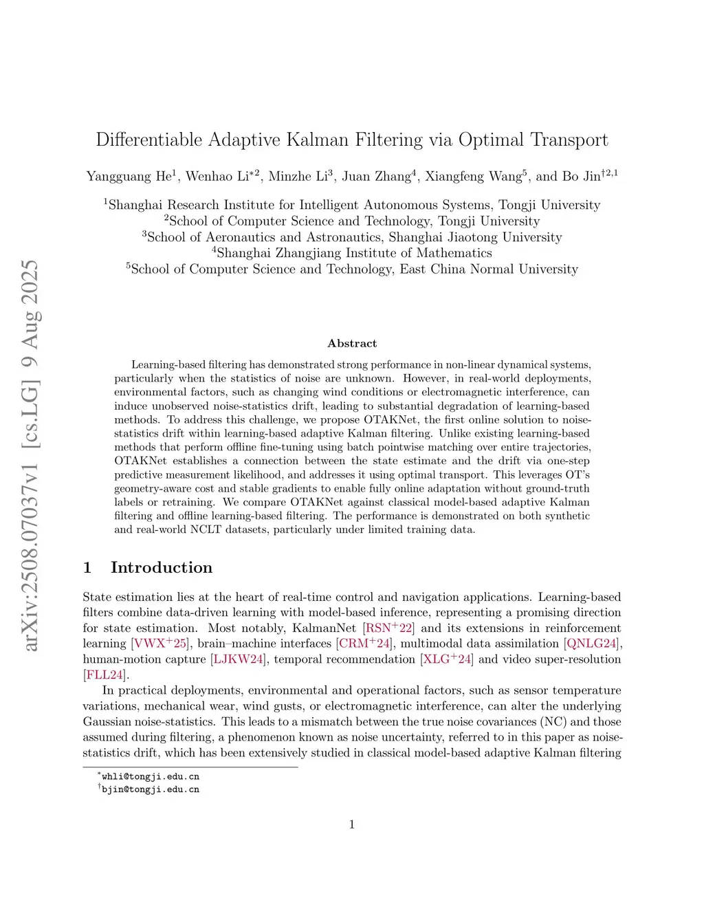Differentiable Adaptive Kalman Filtering via Optimal Transport