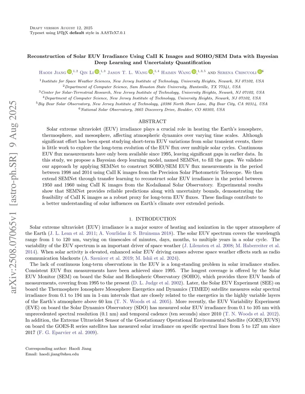 Solar extreme ultraviolet (EUV) irradiance plays a crucial role in heating the Earth's ionosphere, thermosphere, and mesosphere, affecting atmospheric dynamics over varying time scales. Although significant effort has been spent studying short-term EUV variations from solar transient events, there is little work to explore the long-term evolution of the EUV flux over multiple solar cycles. Continuous EUV flux measurements have only been available since 1995, leaving significant gaps in earlier data. In this study, we propose a Bayesian deep learning model, named SEMNet, to fill the gaps. We validate our approach by applying SEMNet to construct SOHO/SEM EUV flux measurements in the period between 1998 and 2014 using CaII K images from the Precision Solar Photometric Telescope. We then extend SEMNet through transfer learning to reconstruct solar EUV irradiance in the period between 1950 and 1960 using CaII K images from the Kodaikanal Solar Observatory. Experimental results show that SEMNet provides reliable predictions along with uncertainty bounds, demonstrating the feasibility of CaII K images as a robust proxy for long-term EUV fluxes. These findings contribute to a better understanding of solar influences on Earth's climate over extended periods.