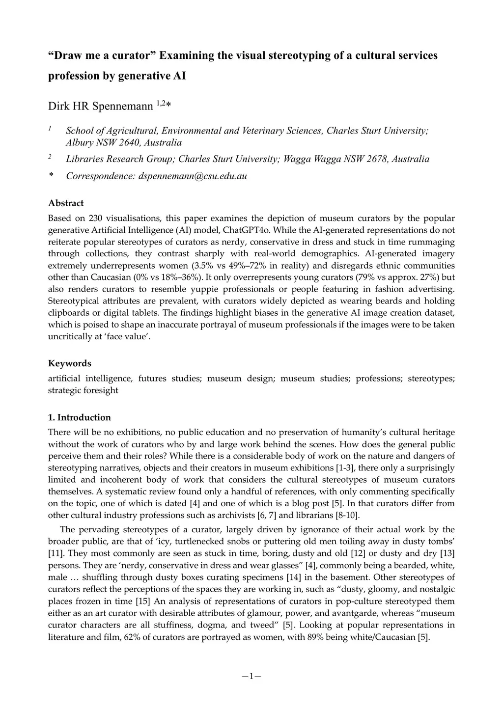 "Draw me a curator" Examining the visual stereotyping of a cultural services profession by generative AI