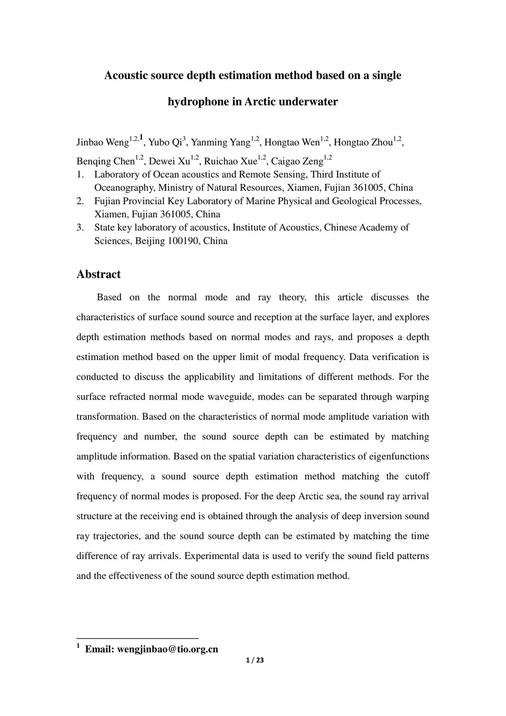 Based on the normal mode and ray theory, this article discusses the characteristics of surface sound source and reception at the surface layer, and explores depth estimation methods based on normal modes and rays, and proposes a depth estimation method based on the upper limit of modal frequency. Data verification is conducted to discuss the applicability and limitations of different methods. For the surface refracted normal mode waveguide, modes can be separated through warping transformation. Based on the characteristics of normal mode amplitude variation with frequency and number, the sound source depth can be estimated by matching amplitude information. Based on the spatial variation characteristics of eigenfunctions with frequency, a sound source depth estimation method matching the cutoff frequency of normal modes is proposed. For the deep Arctic sea, the sound ray arrival structure at the receiving end is obtained through the analysis of deep inversion sound ray trajectories, and the sound source depth can be estimated by matching the time difference of ray arrivals. Experimental data is used to verify the sound field patterns and the effectiveness of the sound source depth estimation method.