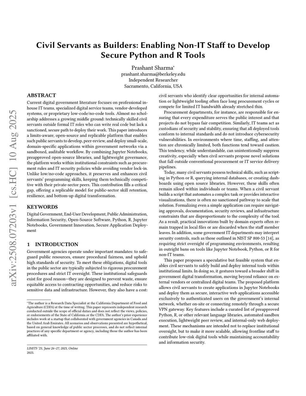 Civil Servants as Builders: Enabling Non-IT Staff to Develop Secure Python and R Tools