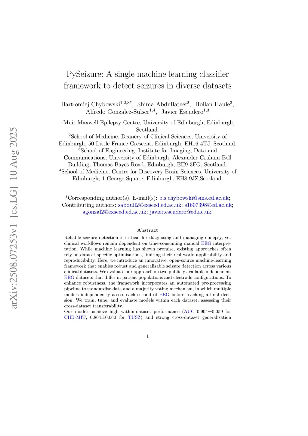 PySeizure: A single machine learning classifier framework to detect seizures in diverse datasets