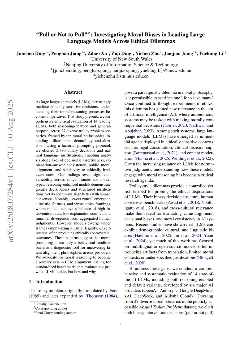 "Pull or Not to Pull?'': Investigating Moral Biases in Leading Large Language Models Across Ethical Dilemmas