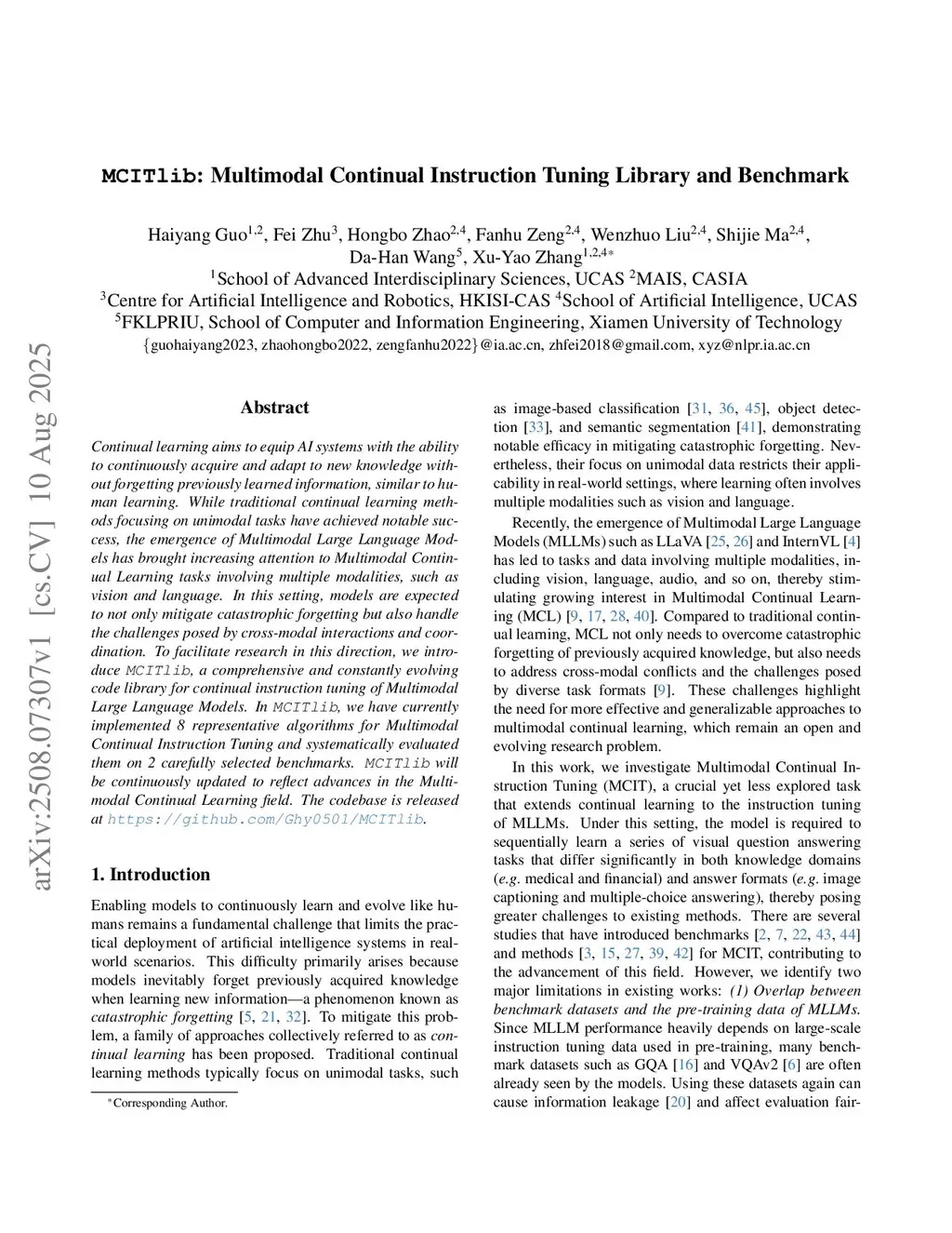 MCITlib: Multimodal Continual Instruction Tuning Library and Benchmark