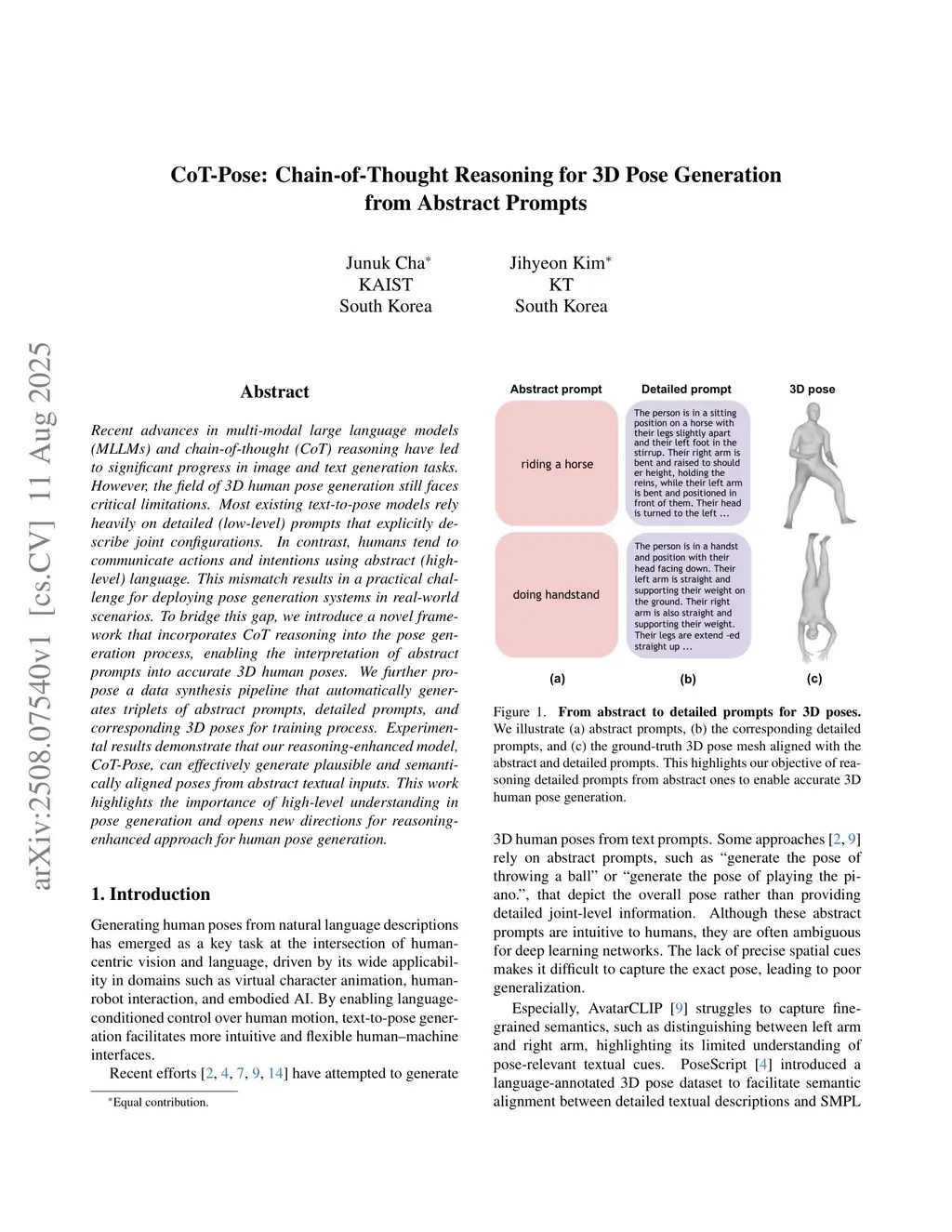 CoT-Pose: Chain-of-Thought Reasoning for 3D Pose Generation from Abstract Prompts