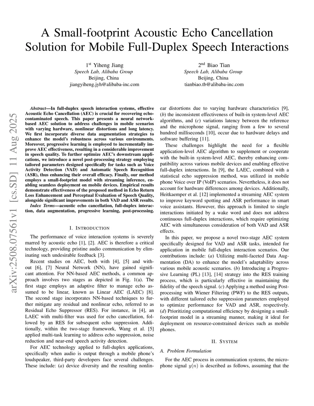 A Small-footprint Acoustic Echo Cancellation Solution for Mobile Full-Duplex Speech Interactions