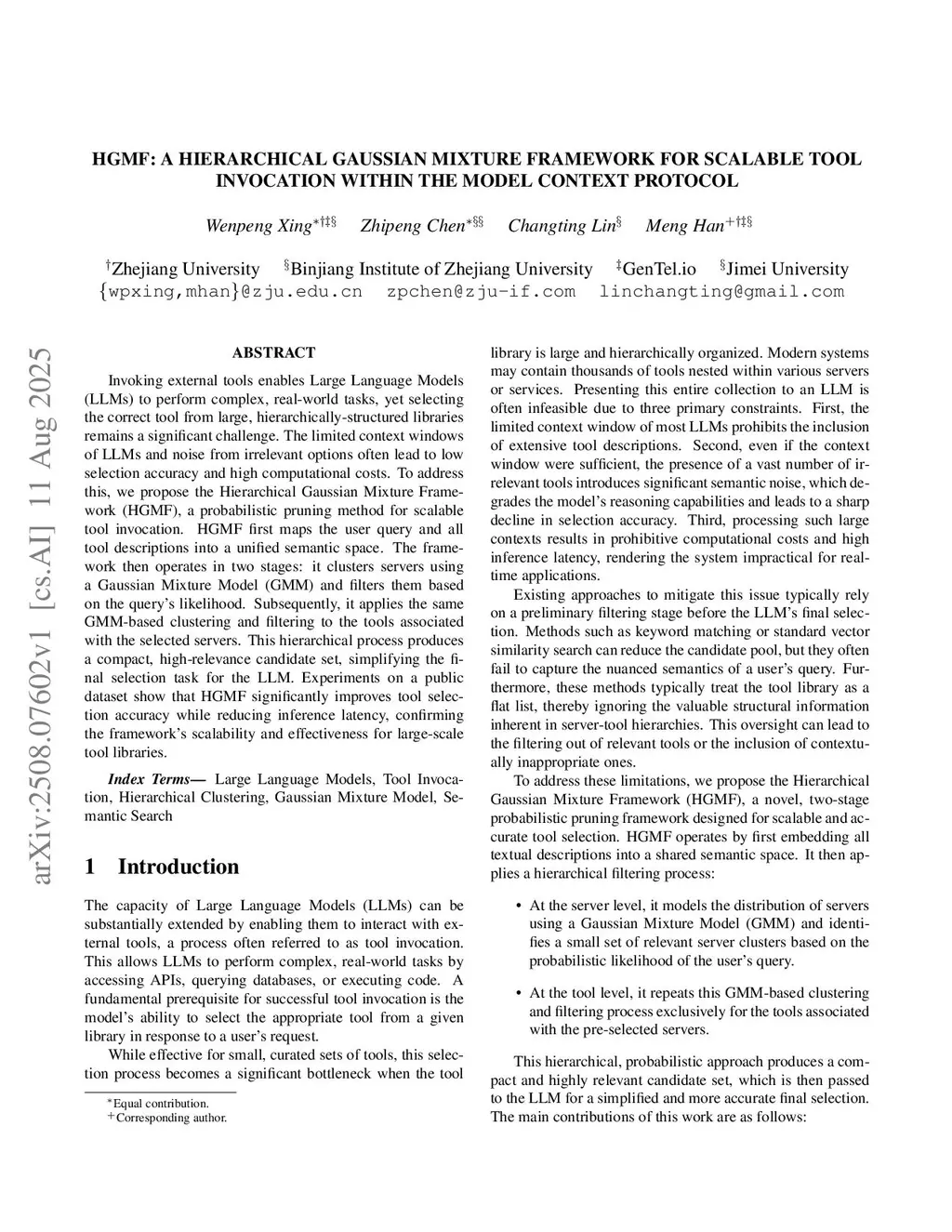 HGMF: A Hierarchical Gaussian Mixture Framework for Scalable Tool Invocation within the Model Context Protocol