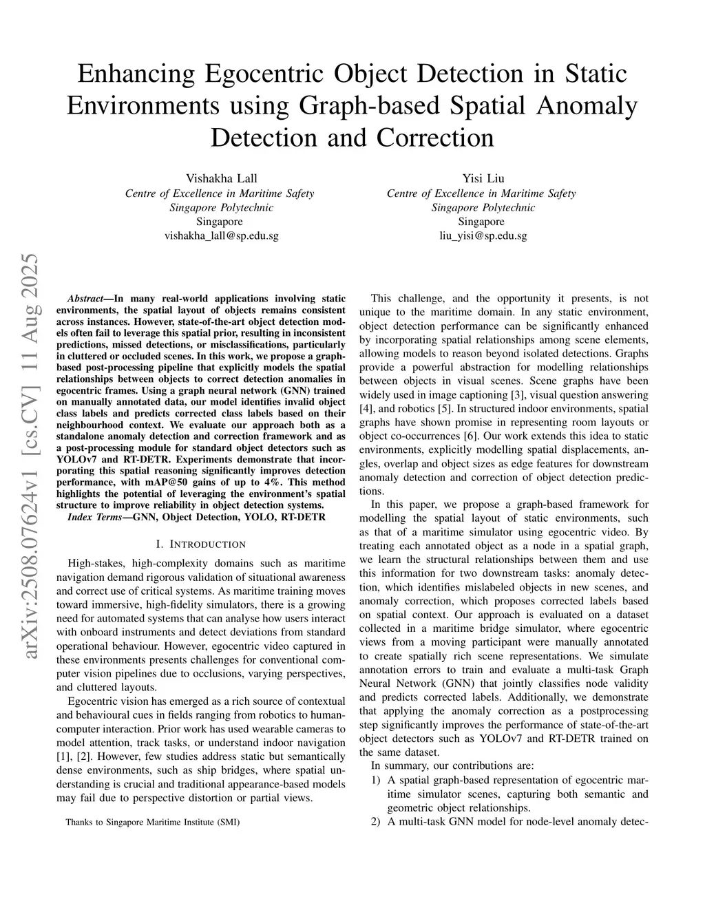 Enhancing Egocentric Object Detection in Static Environments using Graph-based Spatial Anomaly Detection and Correction