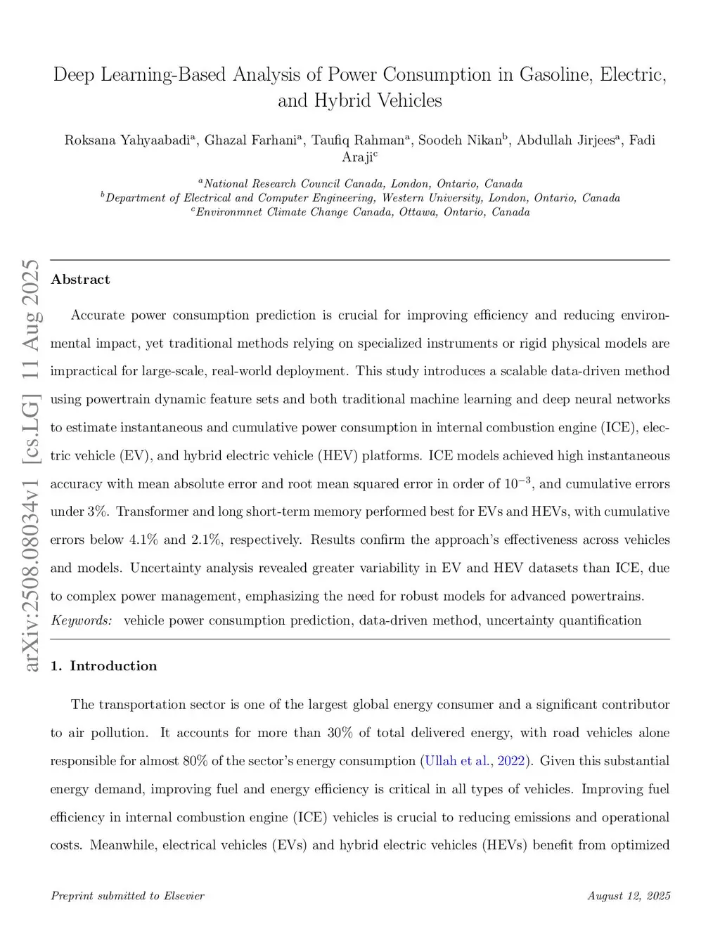 Deep Learning-Based Analysis of Power Consumption in Gasoline, Electric, and Hybrid Vehicles