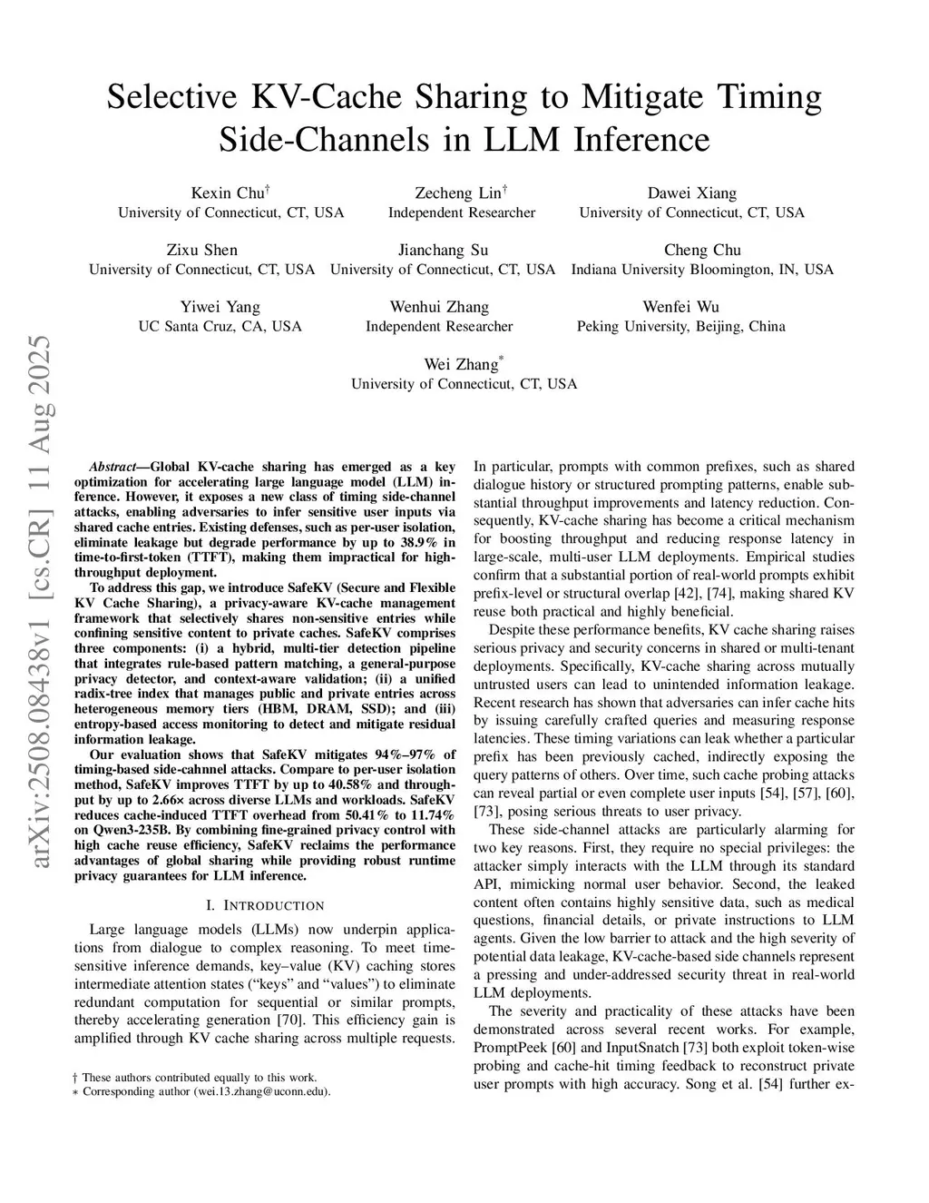 Selective KV-Cache Sharing to Mitigate Timing Side-Channels in LLM Inference