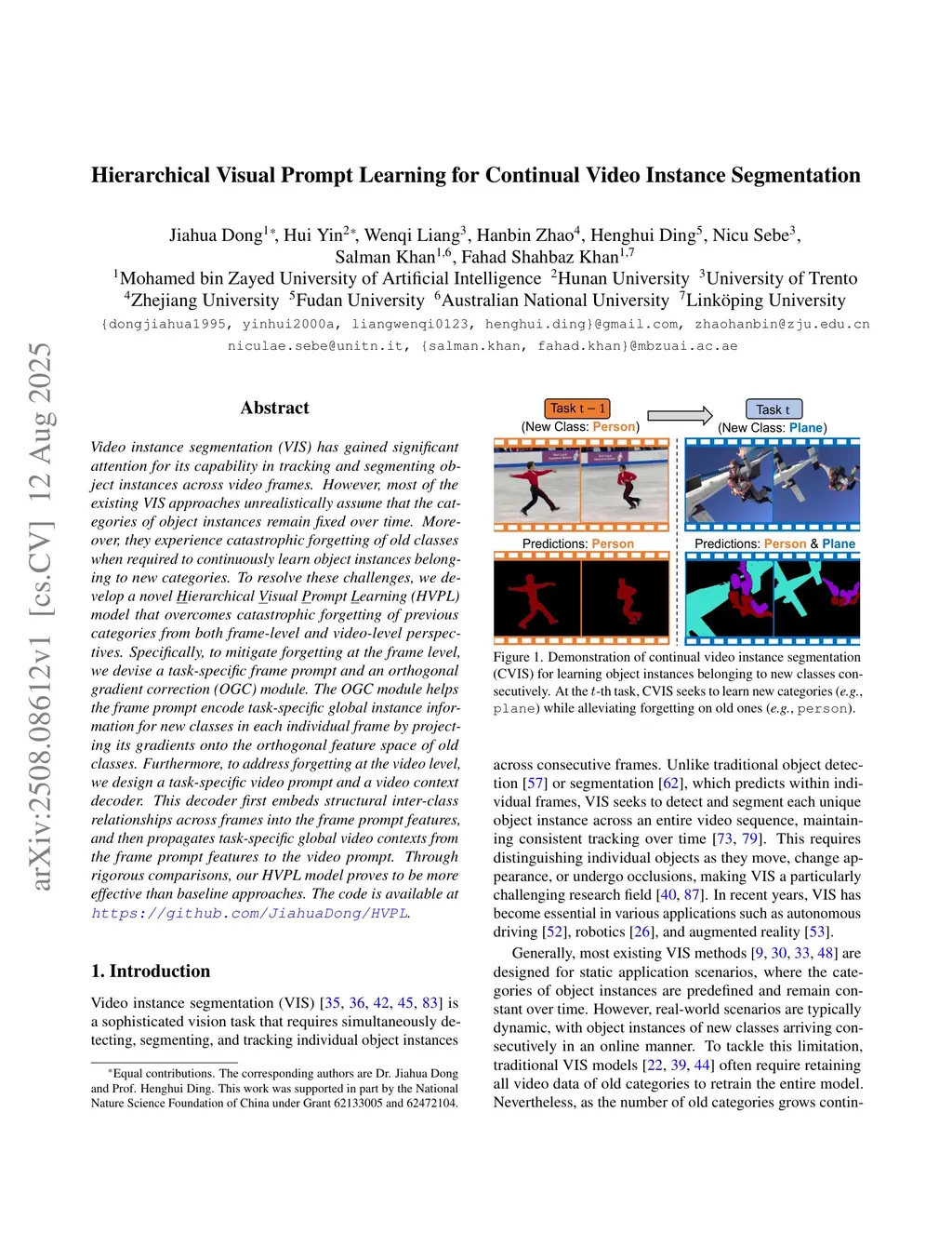 Hierarchical Visual Prompt Learning for Continual Video Instance Segmentation