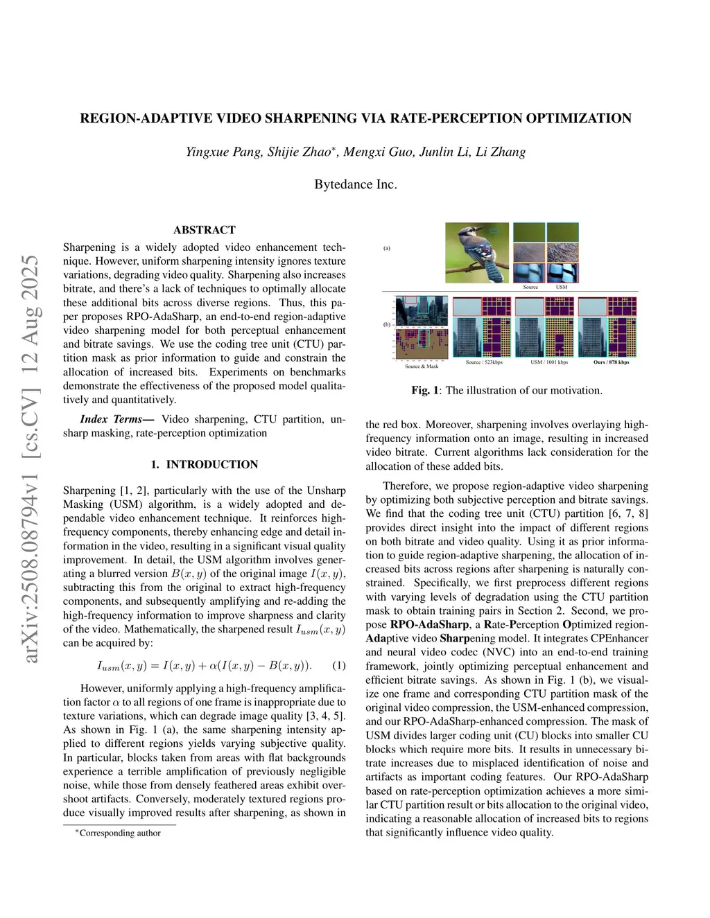 Region-Adaptive Video Sharpening via Rate-Perception Optimization