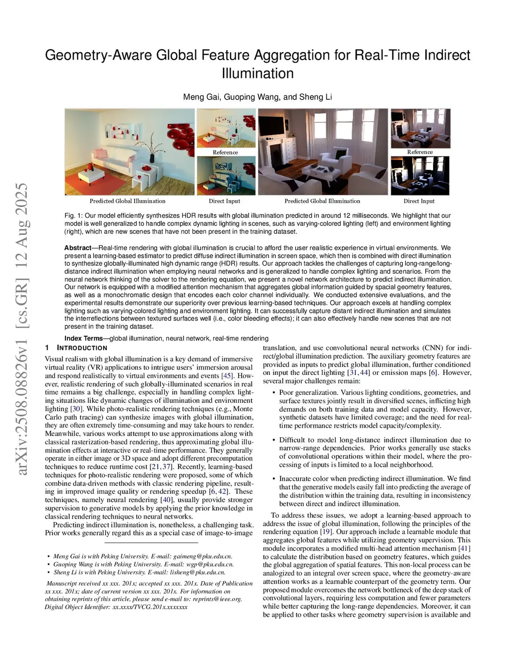 Geometry-Aware Global Feature Aggregation for Real-Time Indirect Illumination