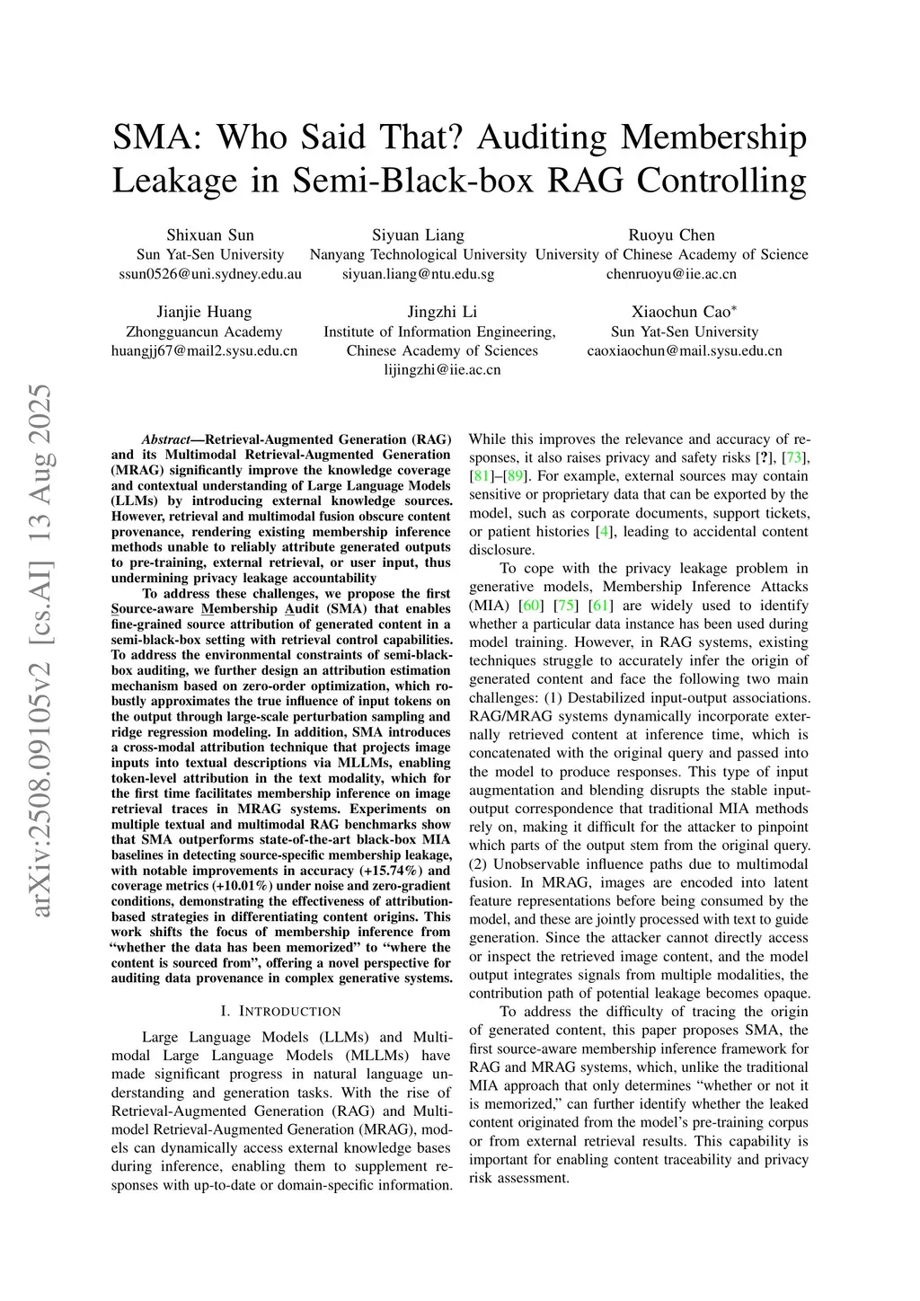 SMA: Who Said That? Auditing Membership Leakage in Semi-Black-box RAG Controlling