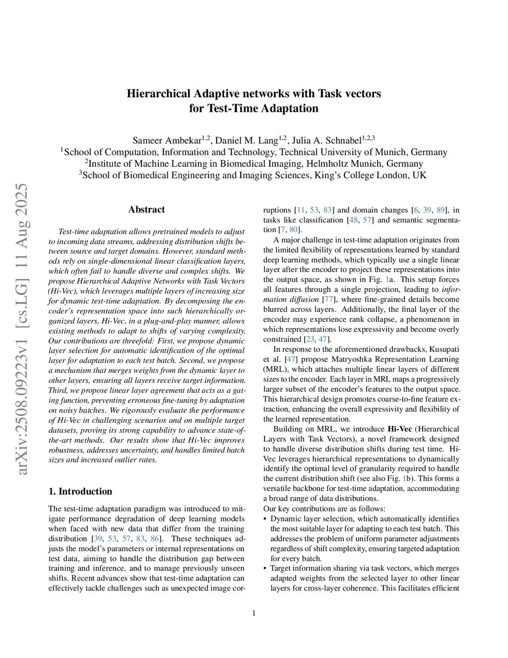 Hierarchical Adaptive networks with Task vectors for Test-Time Adaptation