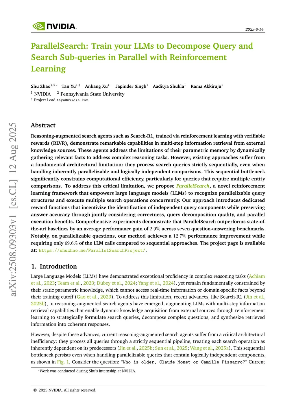 ParallelSearch: Train your LLMs to Decompose Query and Search Sub-queries in Parallel with Reinforcement Learning