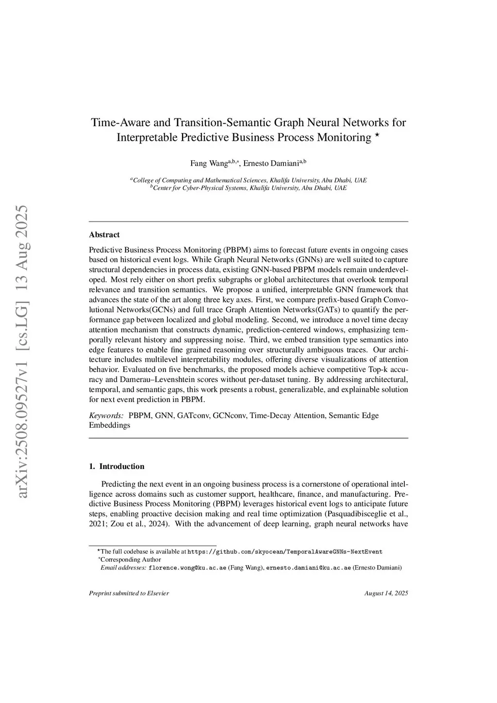 Predictive Business Process Monitoring (PBPM) aims to forecast future events in ongoing cases based on historical event logs. While Graph Neural Networks (GNNs) are well suited to capture structural dependencies in process data, existing GNN-based PBPM models remain underdeveloped. Most rely either on short prefix subgraphs or global architectures that overlook temporal relevance and transition semantics. We propose a unified, interpretable GNN framework that advances the state of the art along three key axes. First, we compare prefix-based Graph Convolutional Networks(GCNs) and full trace Graph Attention Networks(GATs) to quantify the performance gap between localized and global modeling. Second, we introduce a novel time decay attention mechanism that constructs dynamic, prediction-centered windows, emphasizing temporally relevant history and suppressing noise. Third, we embed transition type semantics into edge features to enable fine grained reasoning over structurally ambiguous traces. Our architecture includes multilevel interpretability modules, offering diverse visualizations of attention behavior. Evaluated on five benchmarks, the proposed models achieve competitive Top-k accuracy and DL scores without per-dataset tuning. By addressing architectural, temporal, and semantic gaps, this work presents a robust, generalizable, and explainable solution for next event prediction in PBPM.