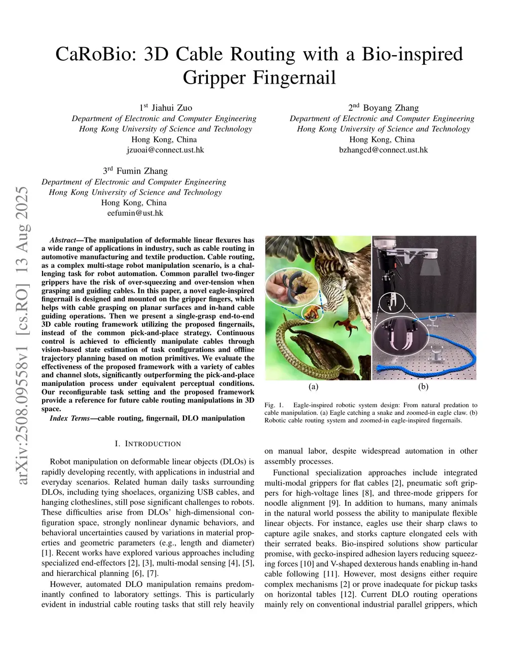 CaRoBio: 3D Cable Routing with a Bio-inspired Gripper Fingernail