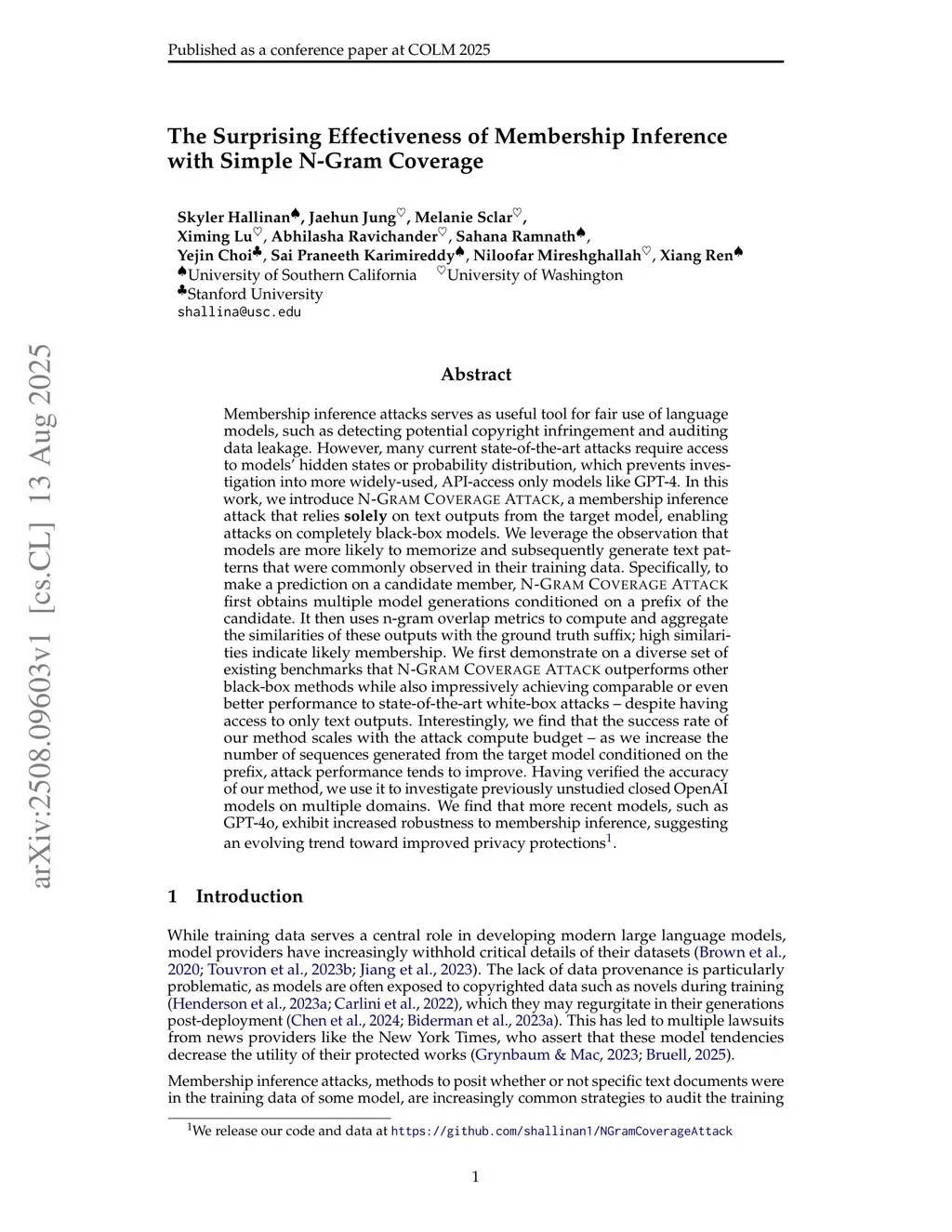 The Surprising Effectiveness of Membership Inference with Simple N-Gram Coverage