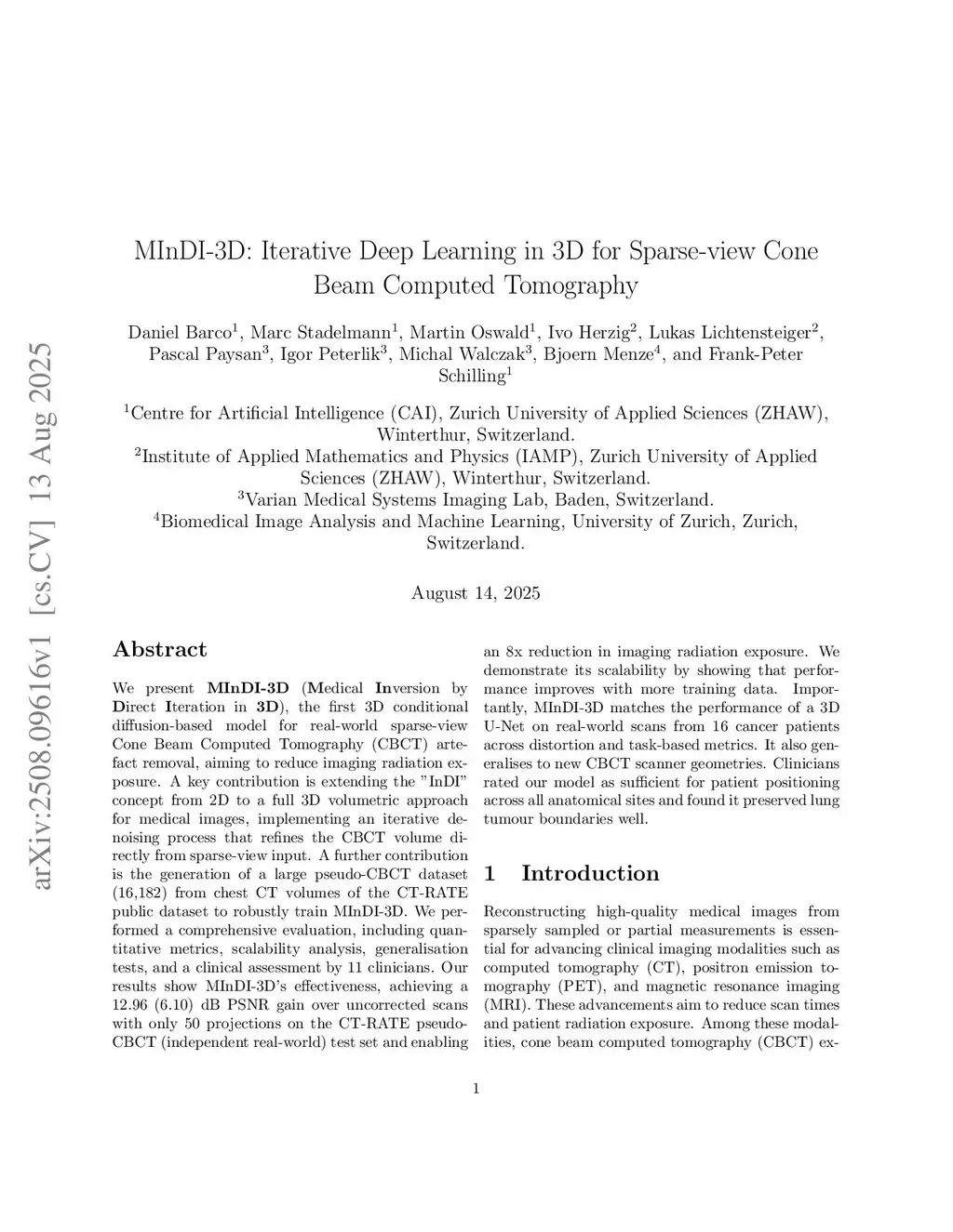 MInDI-3D: Iterative Deep Learning in 3D for Sparse-view Cone Beam Computed Tomography