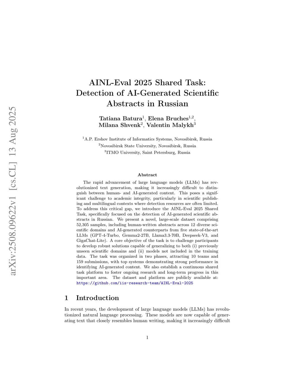 AINL-Eval 2025 Shared Task: Detection of AI-Generated Scientific Abstracts in Russian