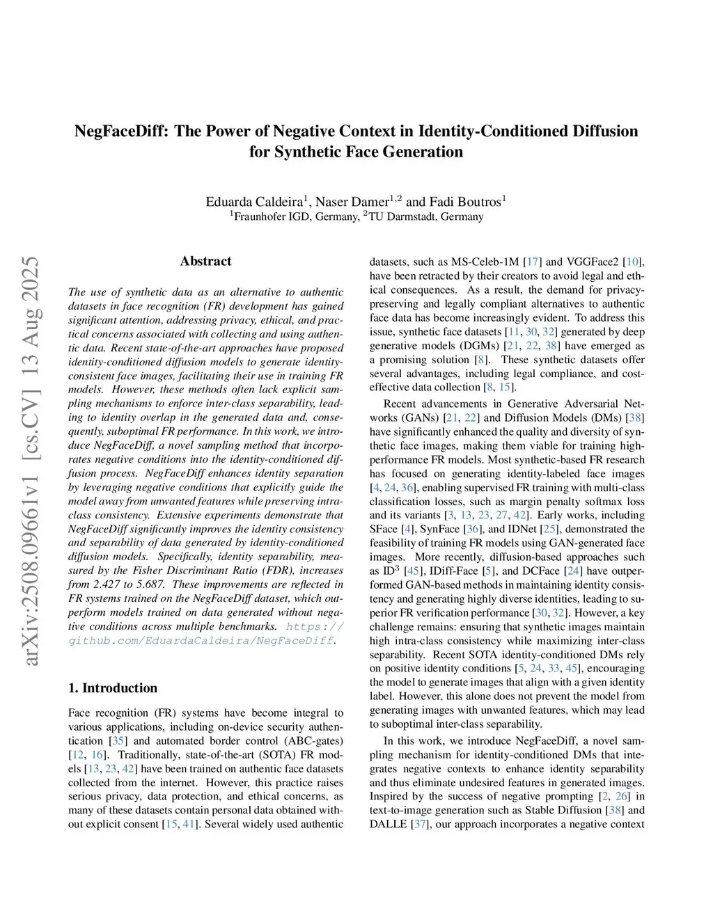 NegFaceDiff: The Power of Negative Context in Identity-Conditioned Diffusion for Synthetic Face Generation