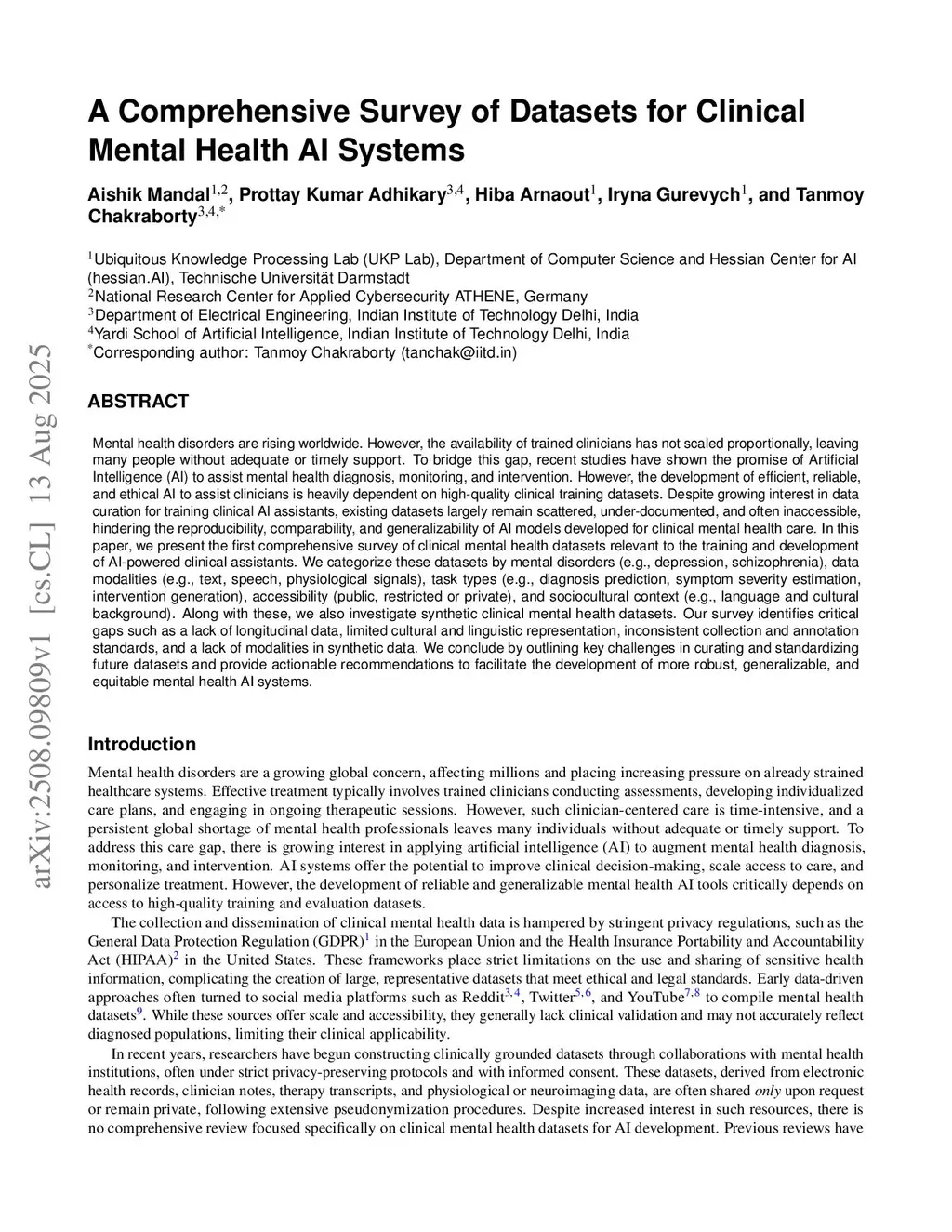 A Comprehensive Review of Datasets for Clinical Mental Health AI Systems