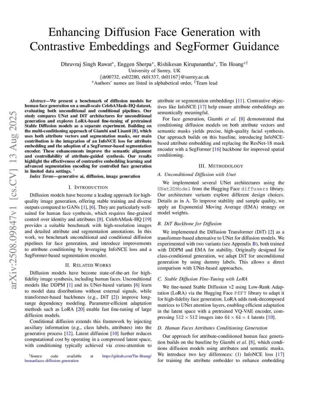 Enhancing Diffusion Face Generation with Contrastive Embeddings and SegFormer Guidance