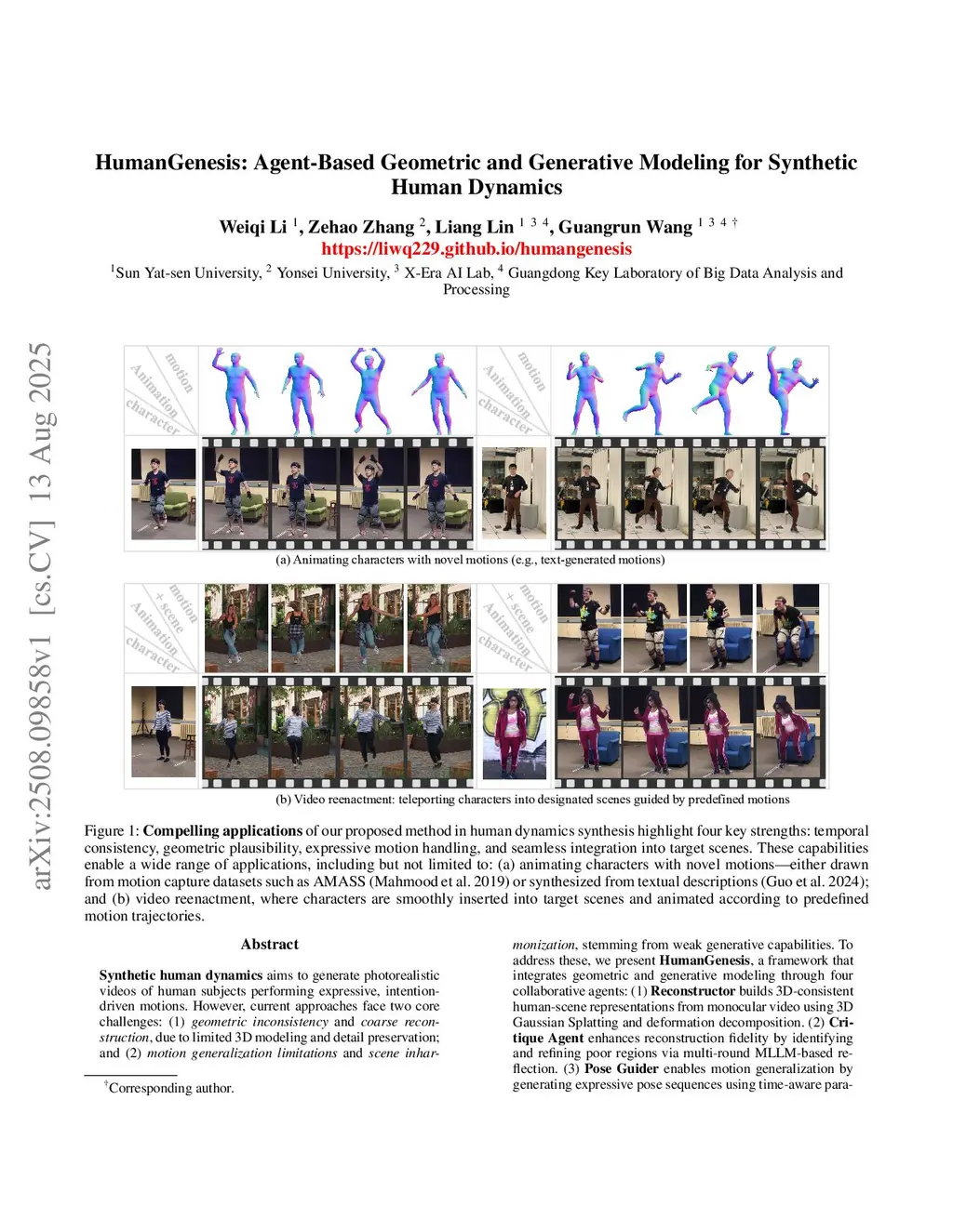 HumanGenesis: Agent-Based Geometric and Generative Modeling for Synthetic Human Dynamics