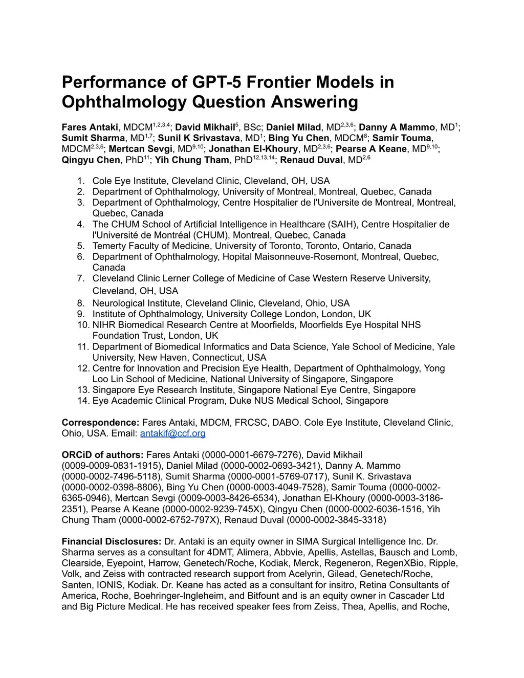 Performance of GPT-5 Frontier Models in Ophthalmology Question Answering