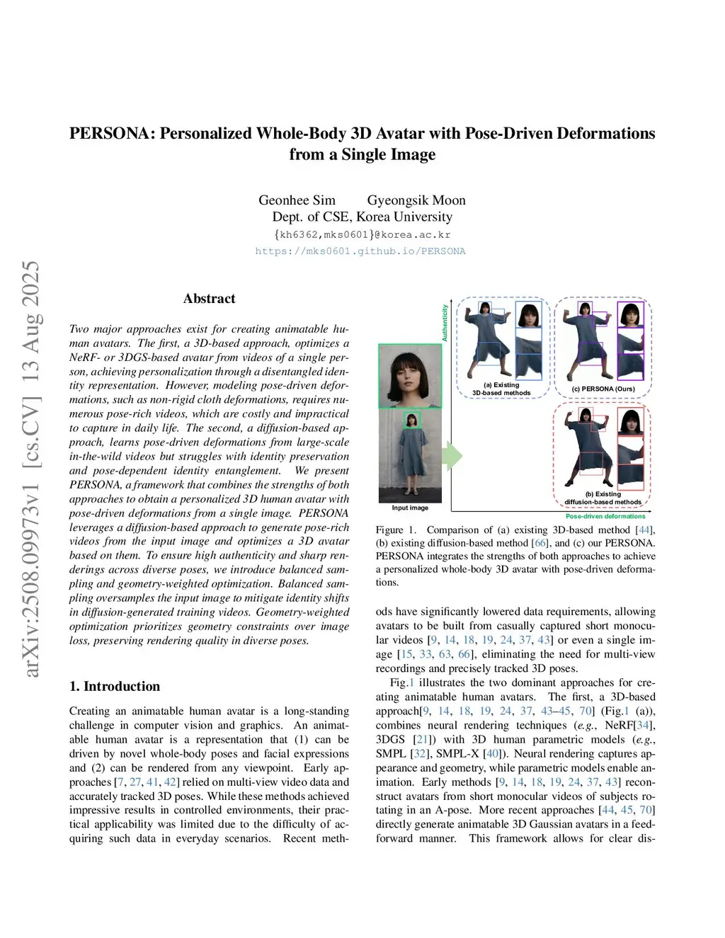 PERSONA: Personalized Whole-Body 3D Avatar with Pose-Driven Deformations from a Single Image
