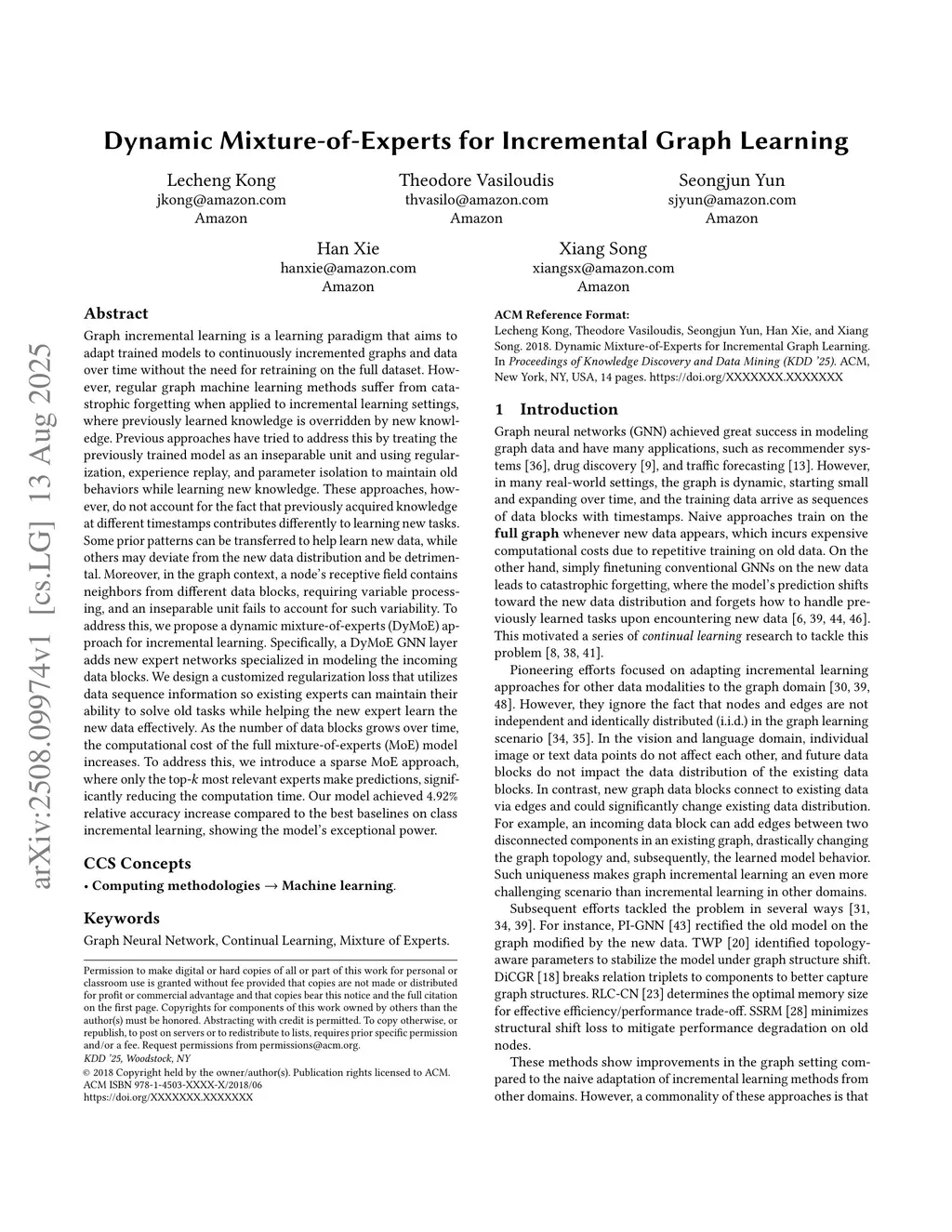Dynamic Mixture-of-Experts for Incremental Graph Learning