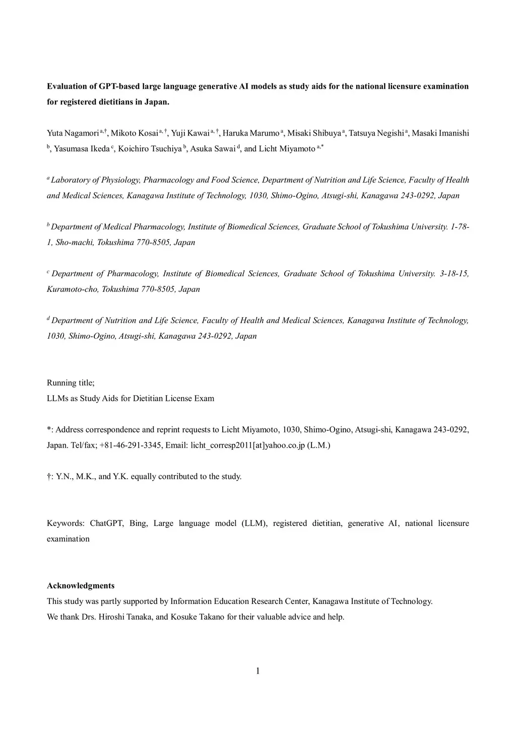 Evaluation of GPT-based large language generative AI models as study aids for the national licensure examination for registered dietitians in Japan