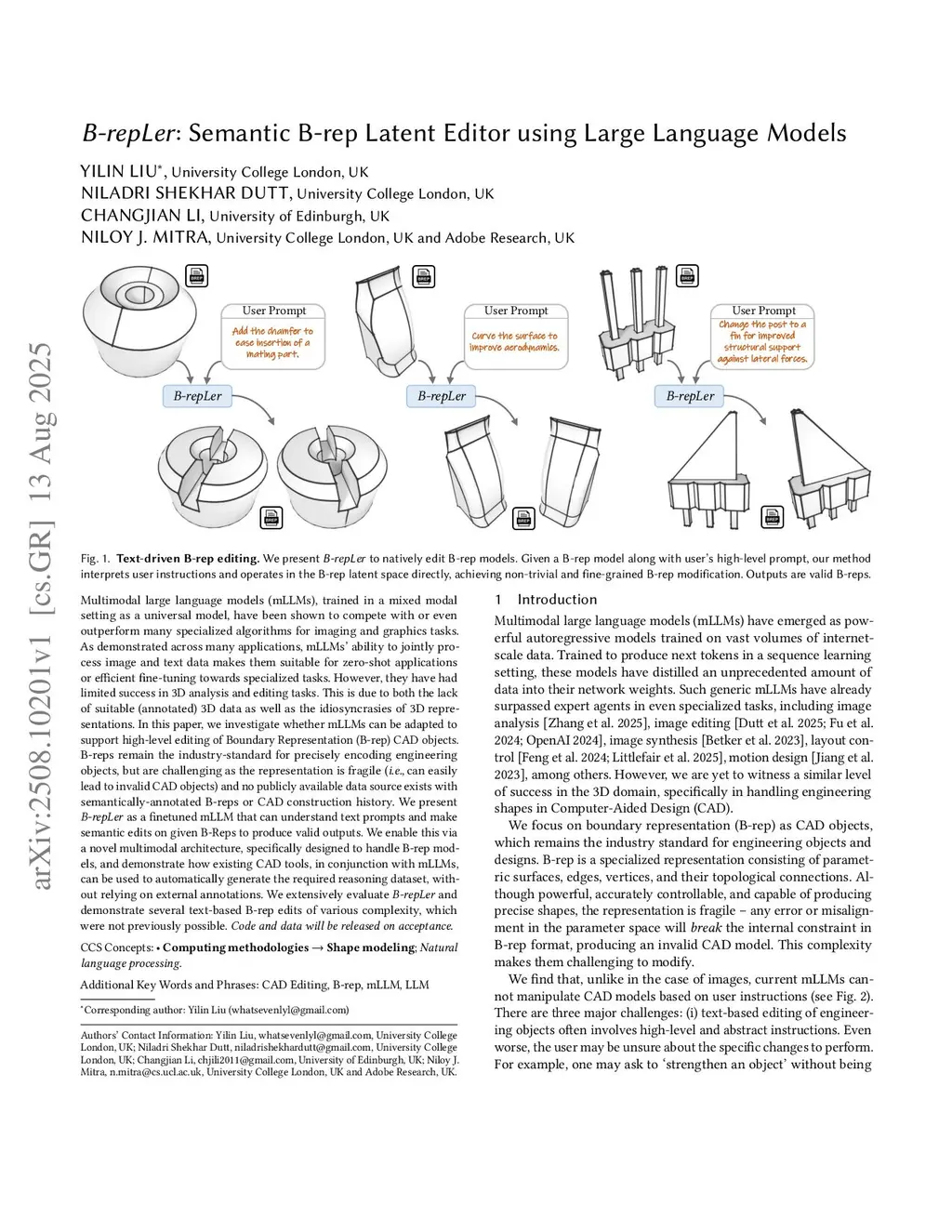 B-repLer: Language-guided Editing of CAD Models