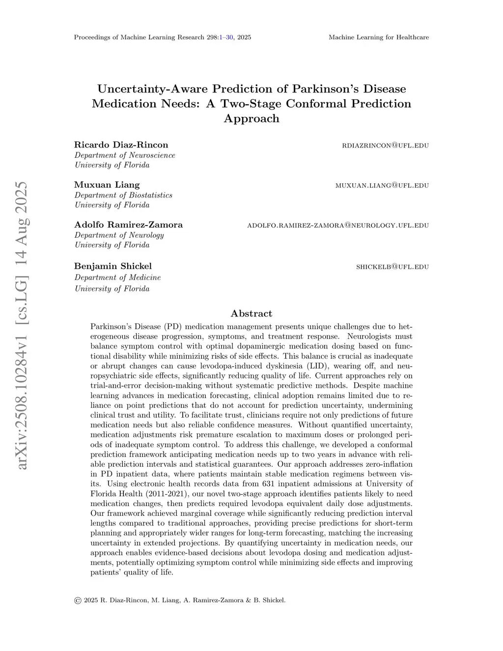 Uncertainty-Aware Prediction of Parkinson's Disease Medication Needs: A Two-Stage Conformal Prediction Approach