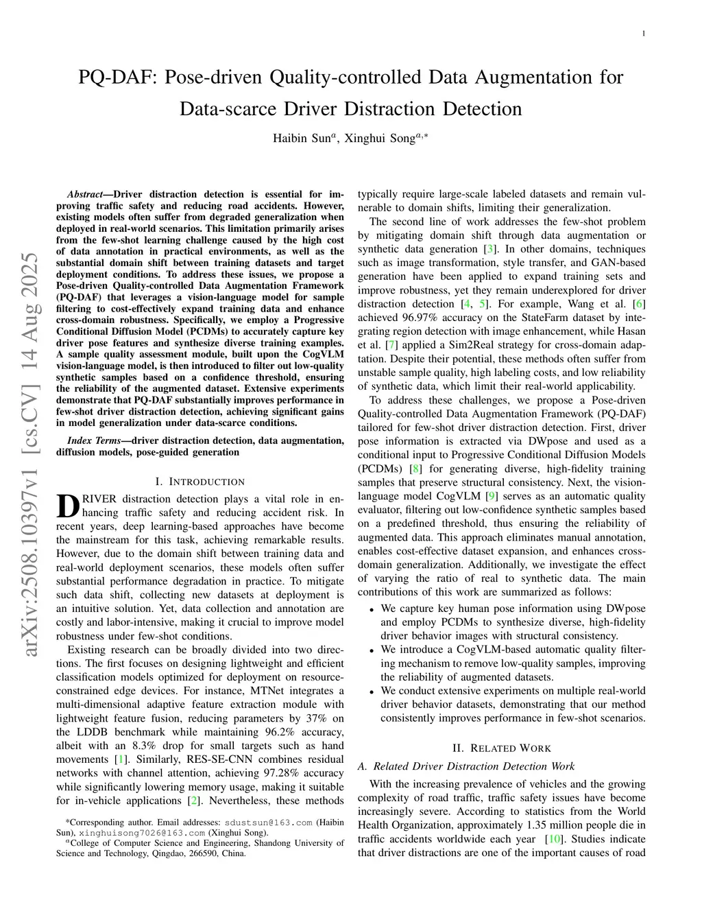 PQ-DAF: Pose-driven Quality-controlled Data Augmentation for Data-scarce Driver Distraction Detection