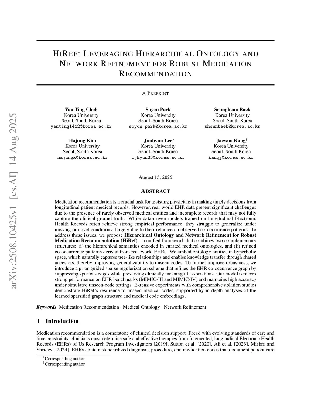 HiRef: Leveraging Hierarchical Ontology and Network Refinement for Robust Medication Recommendation