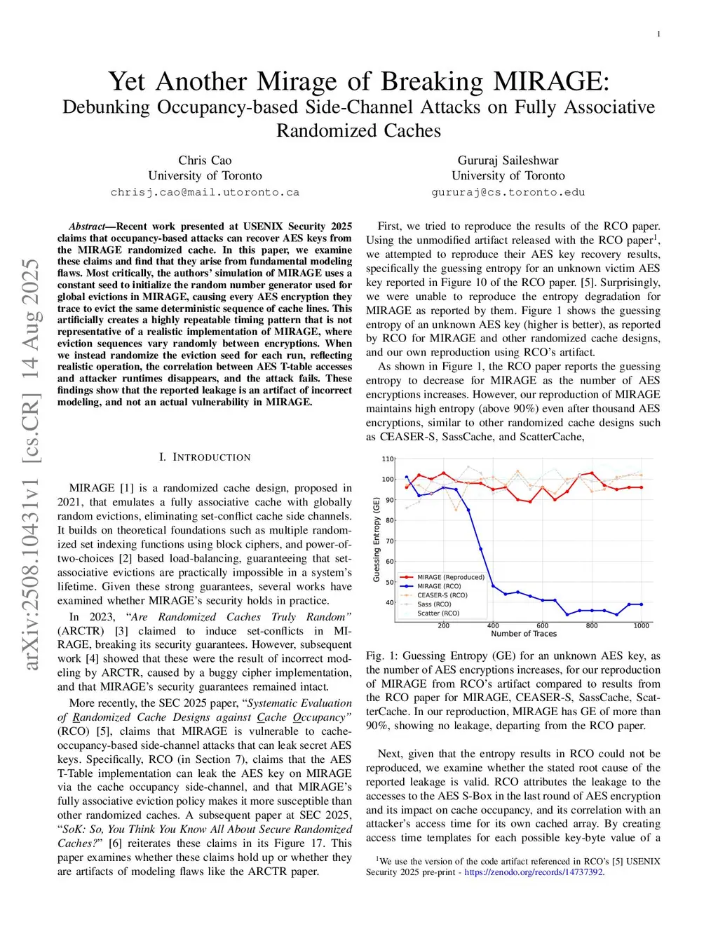 Recent work presented at USENIX Security 2025 (SEC'25) claims that occupancy-based attacks can recover AES keys from the MIRAGE randomized cache. In this paper, we examine these claims and find that they arise from a modeling flaw in the SEC'25 paper. Most critically, the SEC'25 paper's simulation of MIRAGE uses a constant seed to initialize the random number generator used for global evictions in MIRAGE, causing every AES encryption they trace to evict the same deterministic sequence of cache lines. This artificially creates a highly repeatable timing pattern that is not representative of a realistic implementation of MIRAGE, where eviction sequences vary randomly between encryptions. When we instead randomize the eviction seed for each run, reflecting realistic operation, the correlation between AES T-table accesses and attacker runtimes disappears, and the attack fails. These findings show that the reported leakage is an artifact of incorrect modeling, and not an actual vulnerability in MIRAGE.