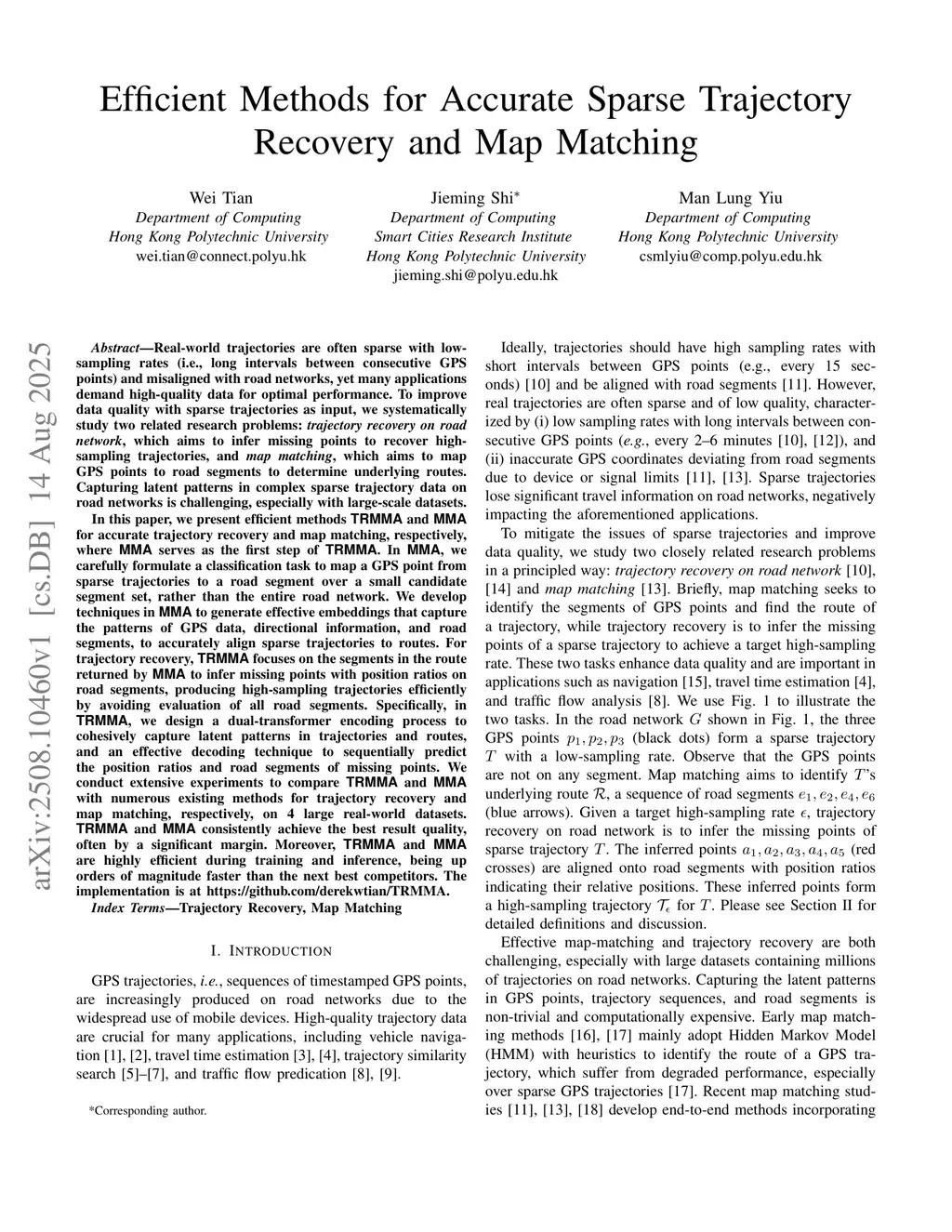 Efficient Methods for Accurate Sparse Trajectory Recovery and Map Matching