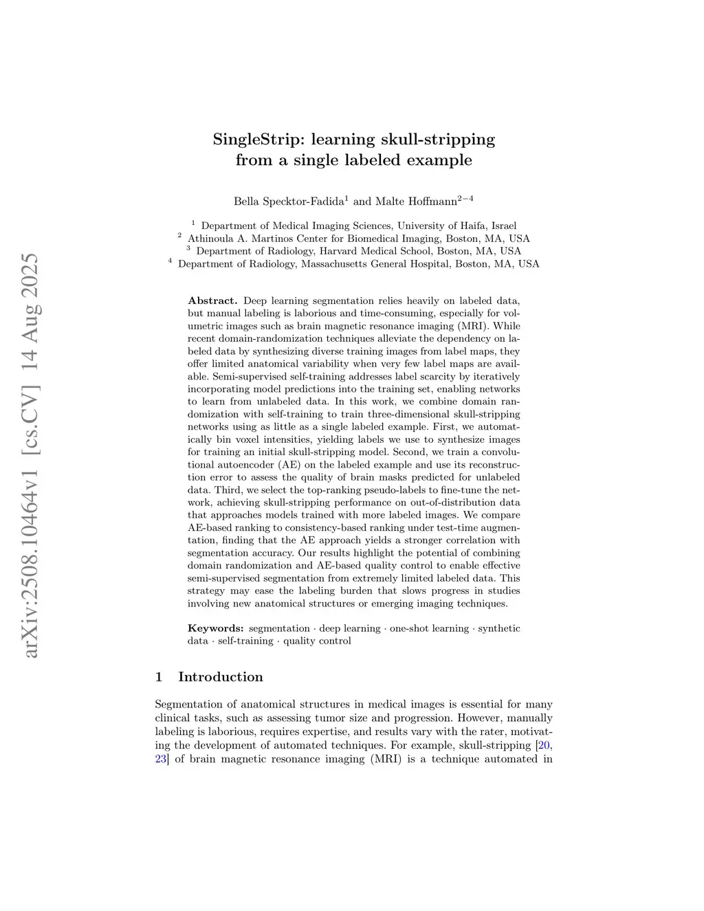 SingleStrip: learning skull-stripping from a single labeled example