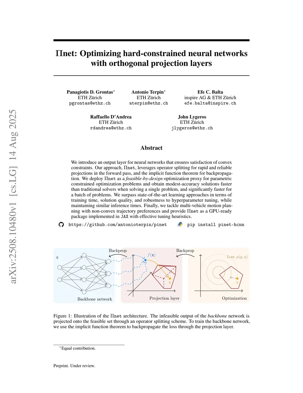 Pinet: Optimizing hard-constrained neural networks with orthogonal projection layers