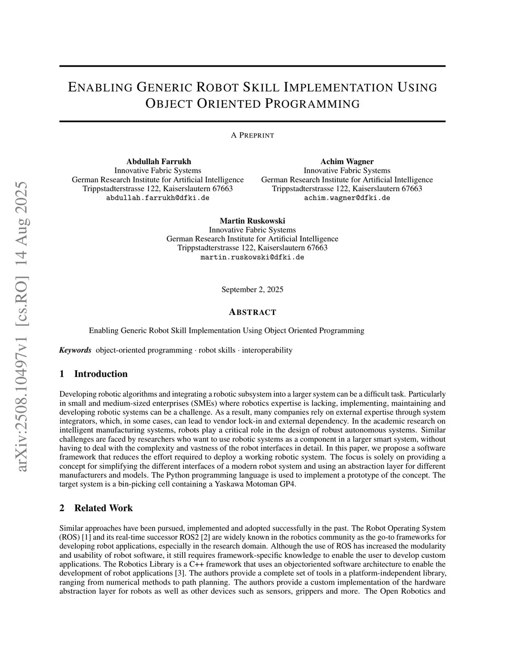 Enabling Generic Robot Skill Implementation Using Object Oriented Programming