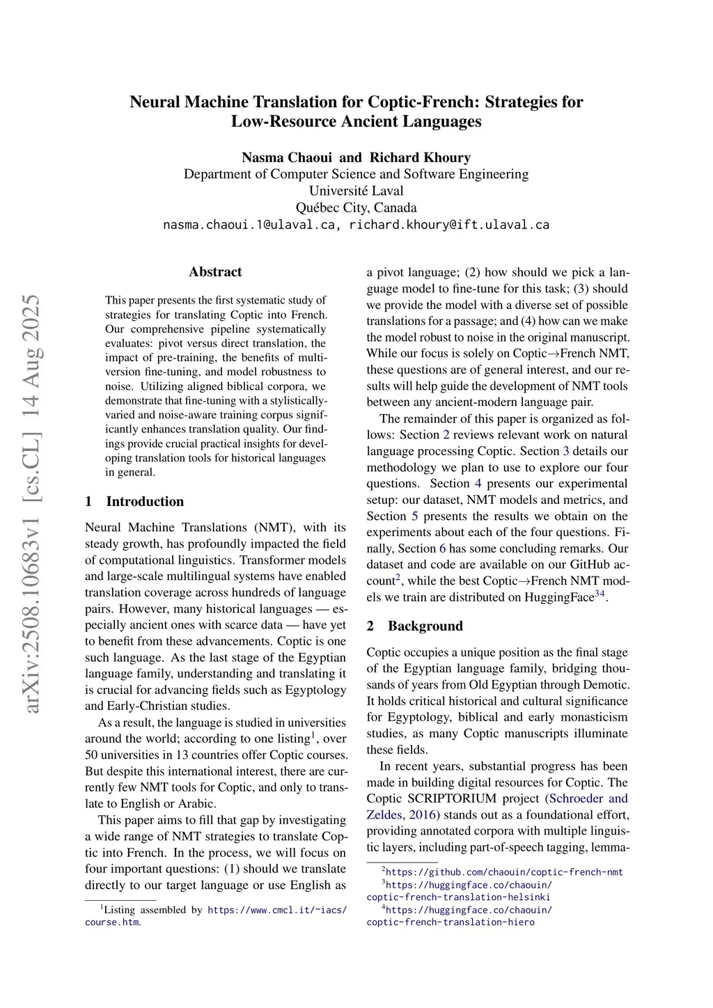 Neural Machine Translation for Coptic-French: Strategies for Low-Resource Ancient Languages