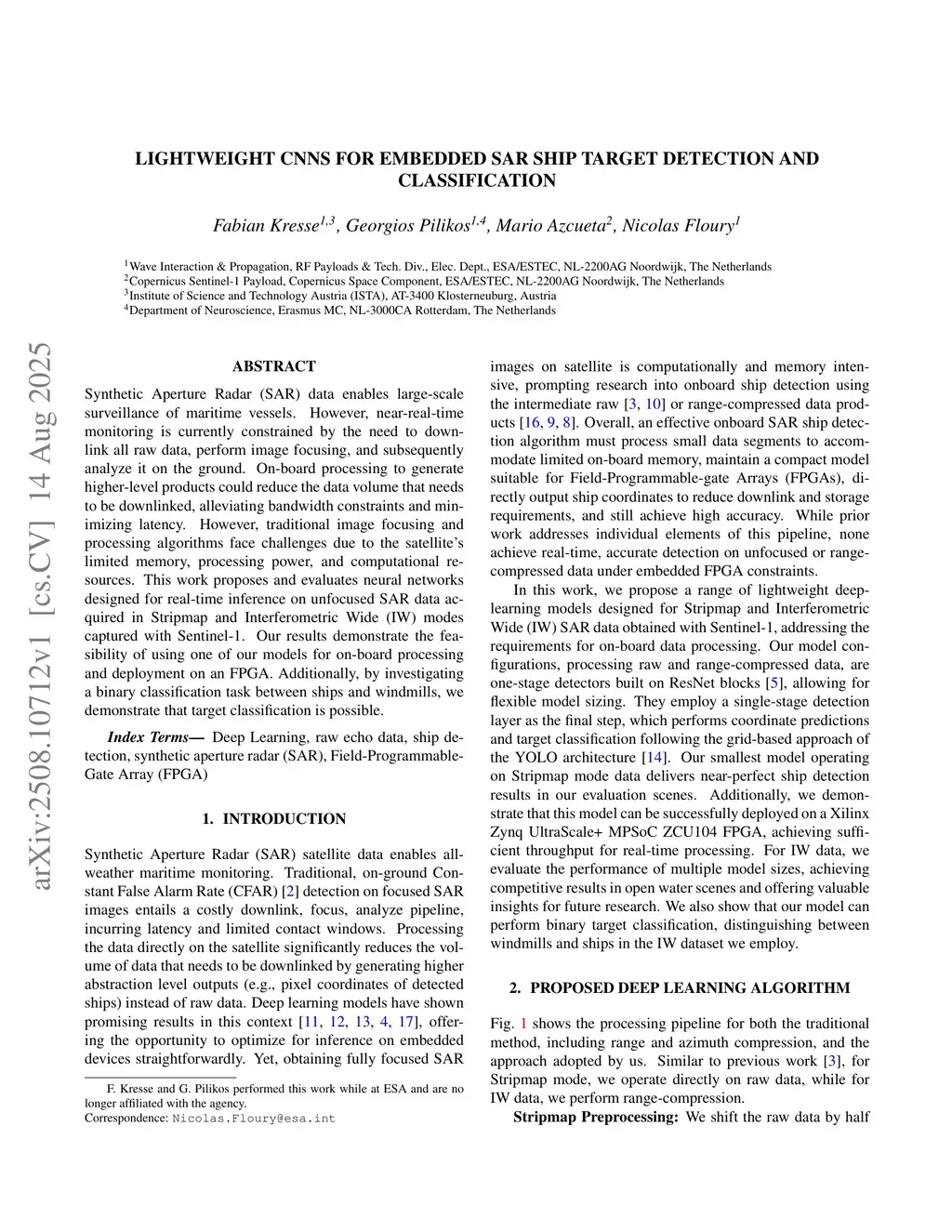 Lightweight CNNs for Embedded SAR Ship Target Detection and Classification