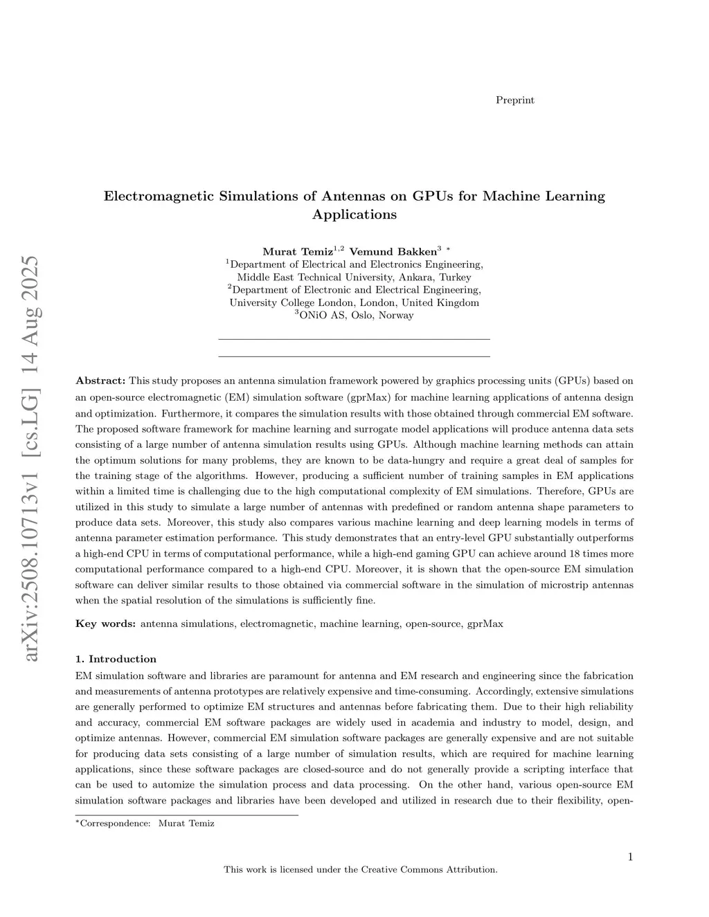 Electromagnetic Simulations of Antennas on GPUs for Machine Learning Applications